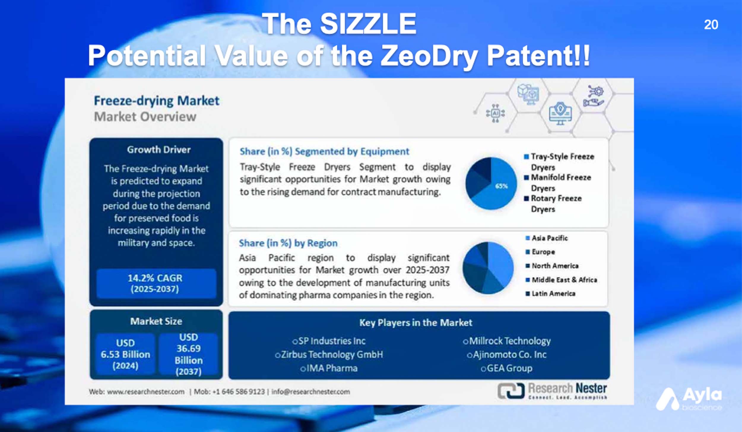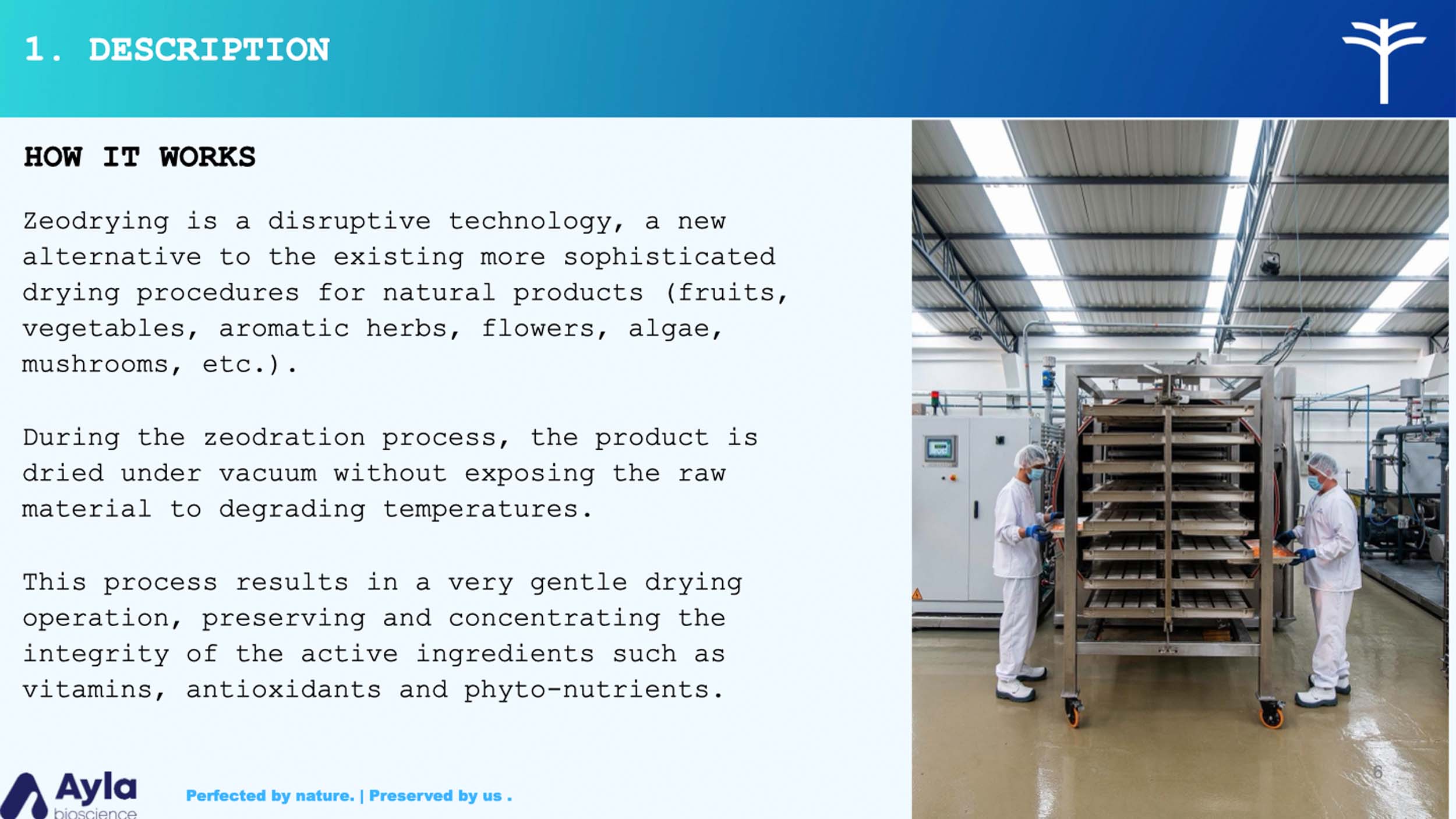 Ayla Bioscience is unlocking the full potential of mushrooms and fungi—an untapped engine in the multi-trillion dollar global bio-economy. Leveraging Zeotech’s patented drying technologies and our advanced cultivation capabilities, we’ve built a scalable, high-margin platform already generating sales in the U.S., Europe, Canada, and Colombia.