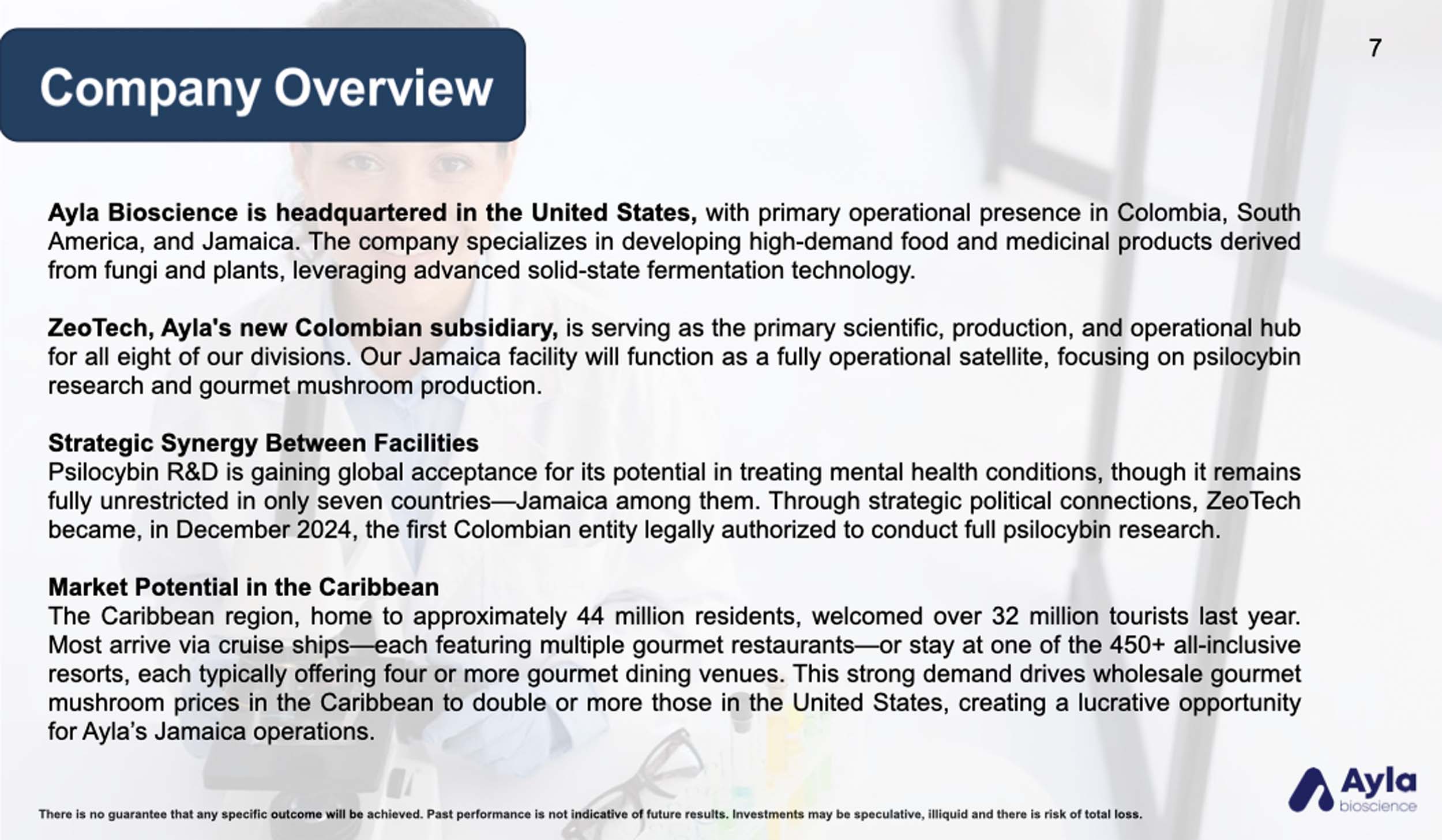 Our dual-market strategy—anchored by Colombia’s cost-efficient, export-driven operations and Jamaica’s open regulatory framework for psychotropic R&D—gives us first-mover advantage in three rapidly growing categories: gourmet mushrooms, medicinal & psychotropic therapeutics, and high-value consumer products. These verticals, combined with a strong revenue base and diversified global footprint, create the perfect setup for a well-received, near-term NASDAQ IPO.