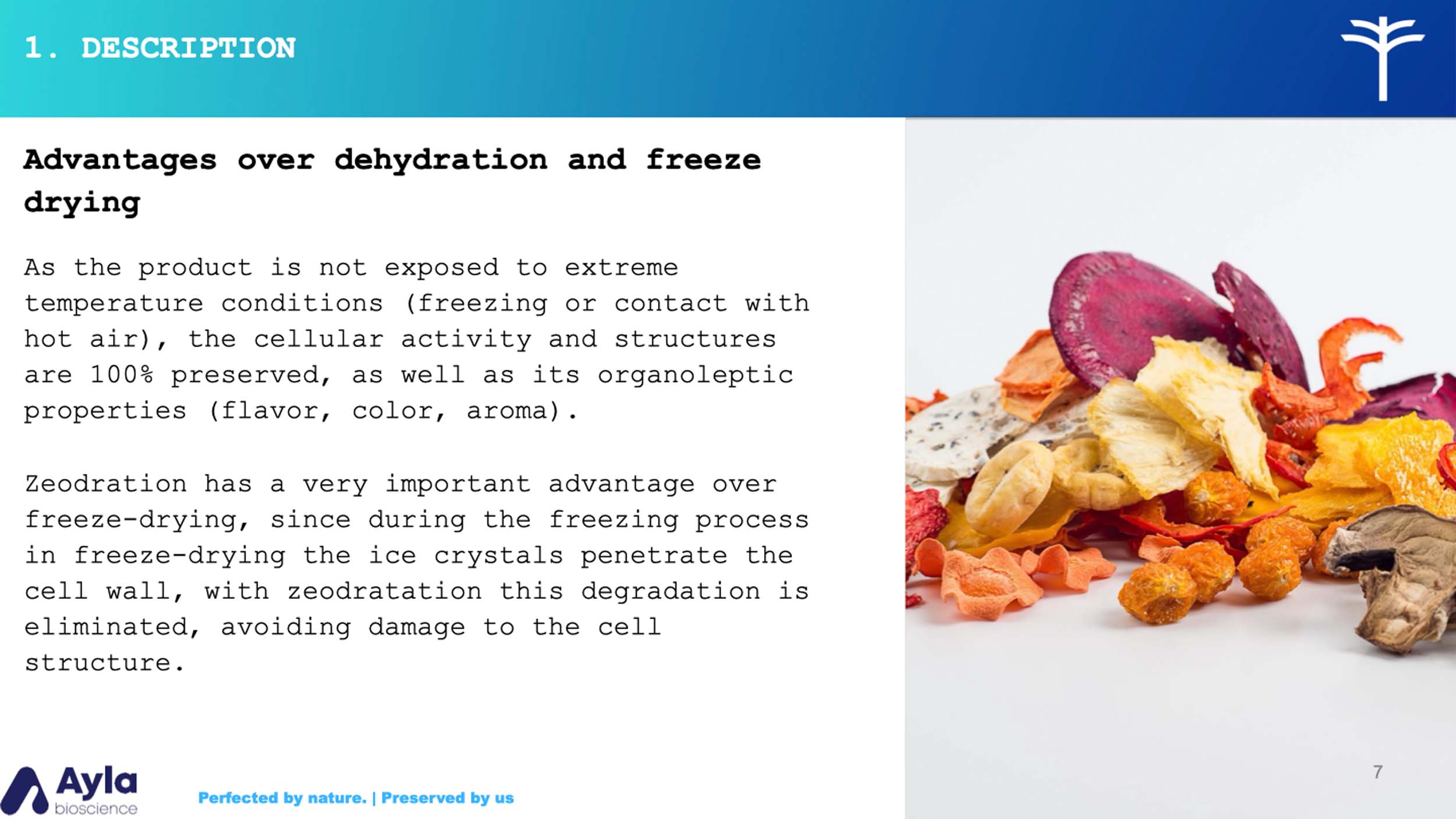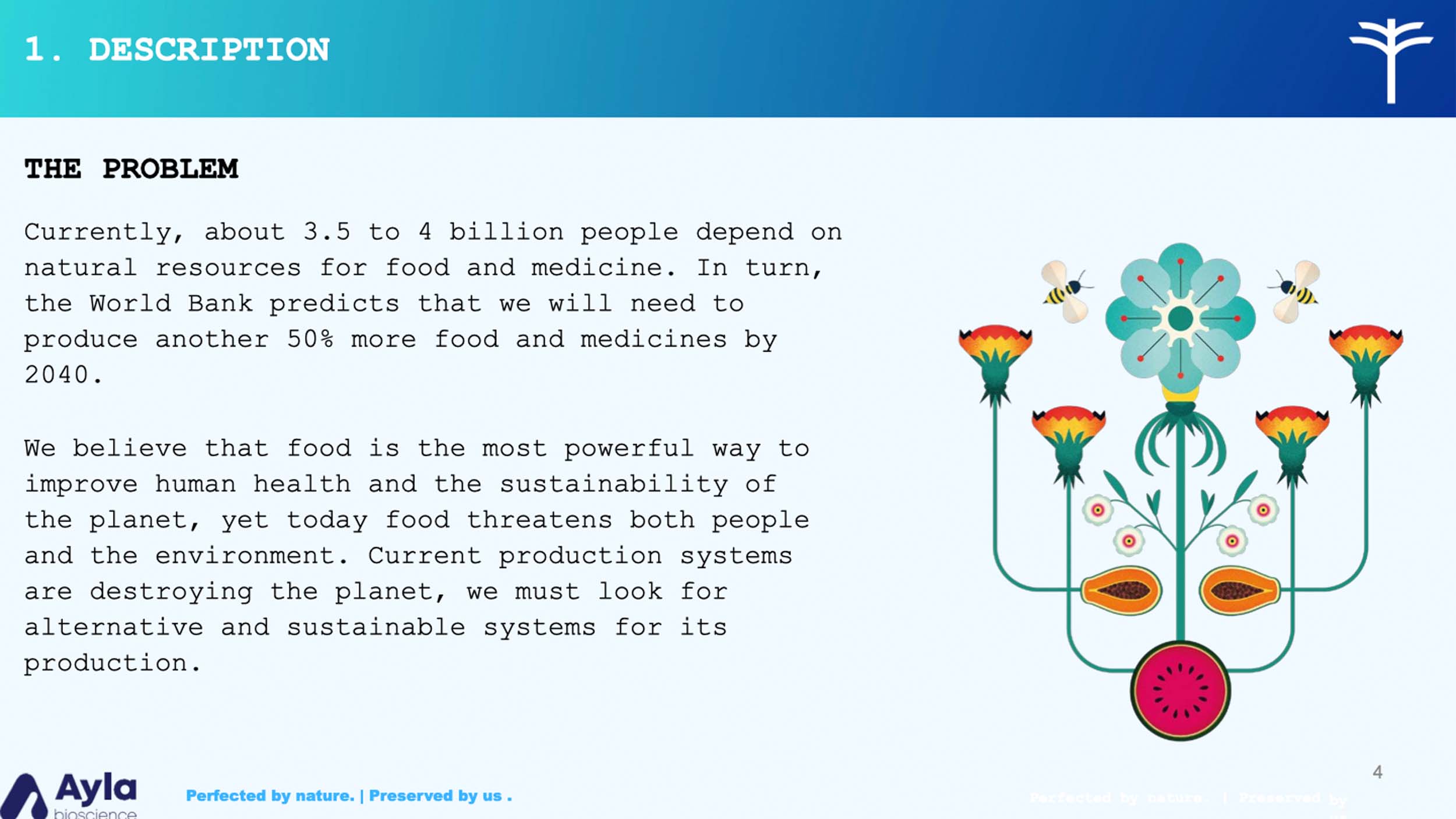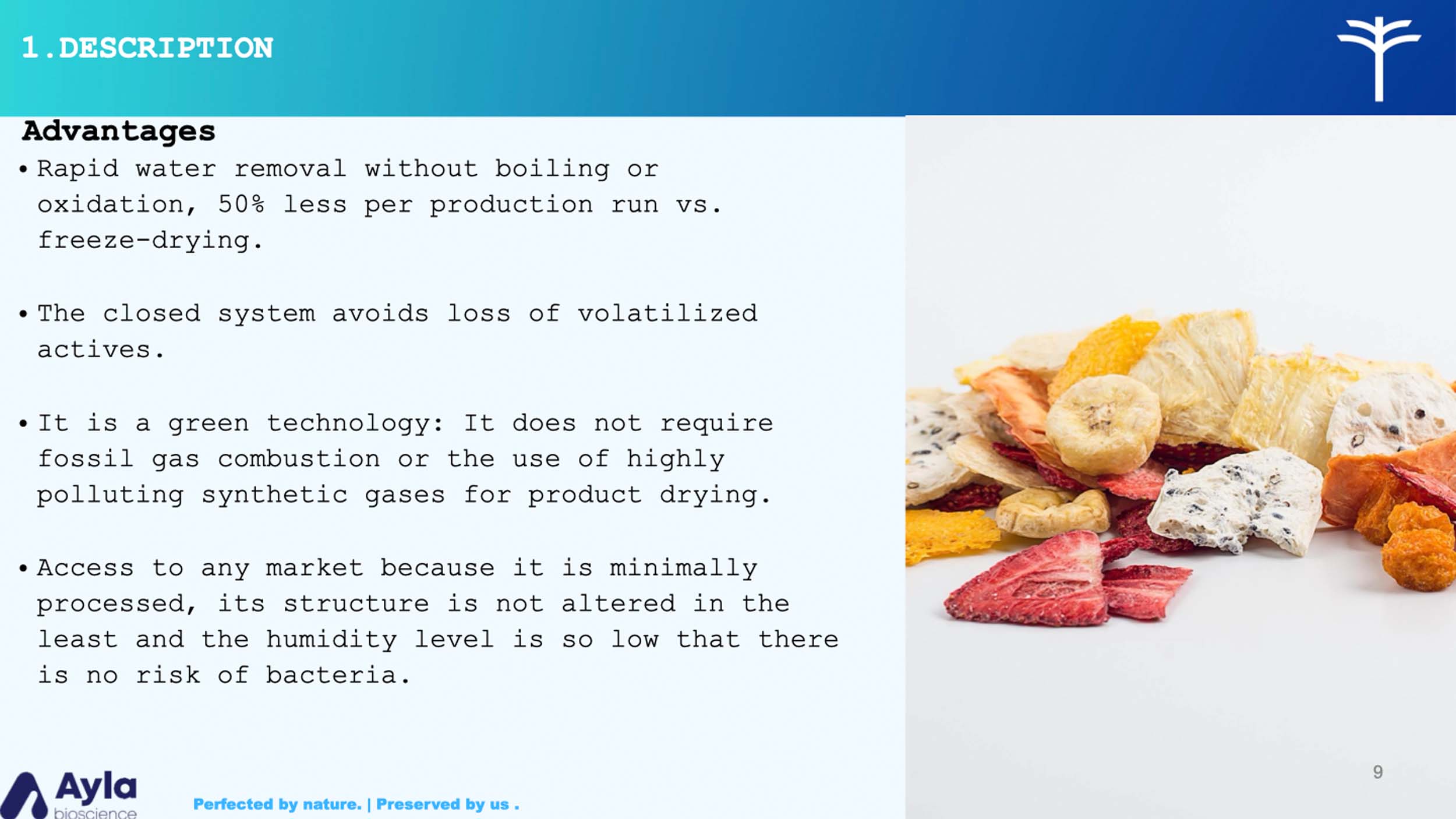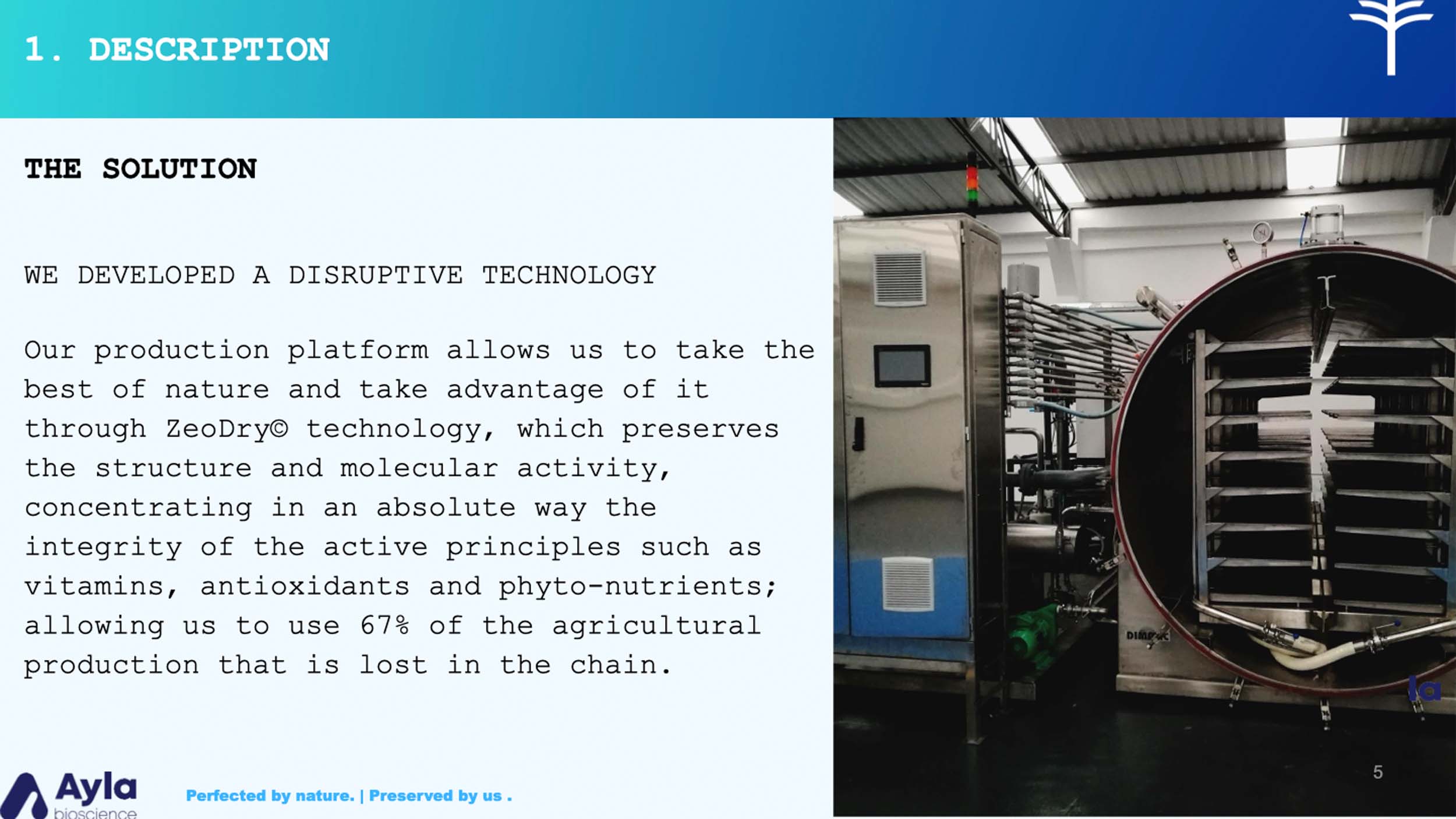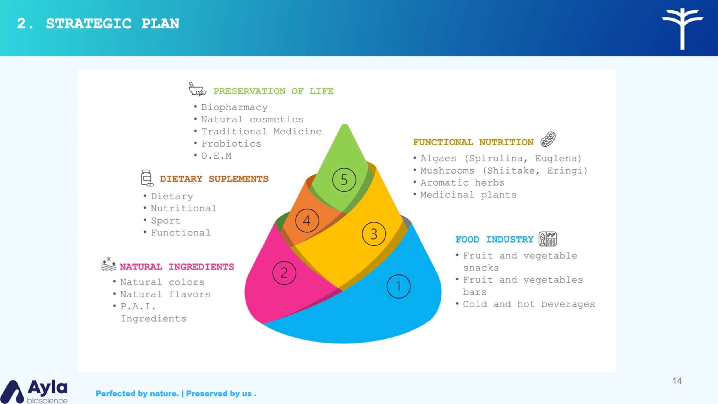 Ayla Bioscience’s vision is to revolutionize the functional food industry through the sustainable production and preservation of high-quality, mushroom-based fruits, vegetables, nutraceuticals, vegetable nutraceuticals and other organic products.